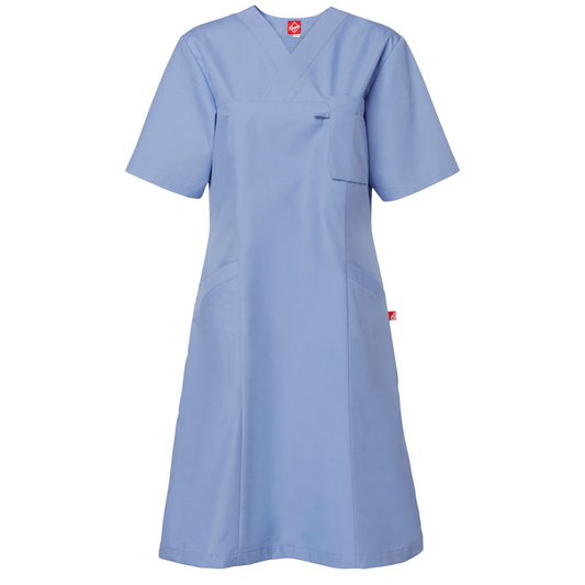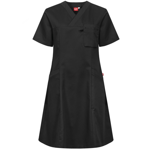 Klänningarna är tillverkade i slitstarka material som tål frekvent tvätt och håller både färg och passform över tid. De finns i olika modeller och färger – från klassiska raka snitt till mer figursydda alternativ, ofta med praktiska fickor för ökad funktionalitet.