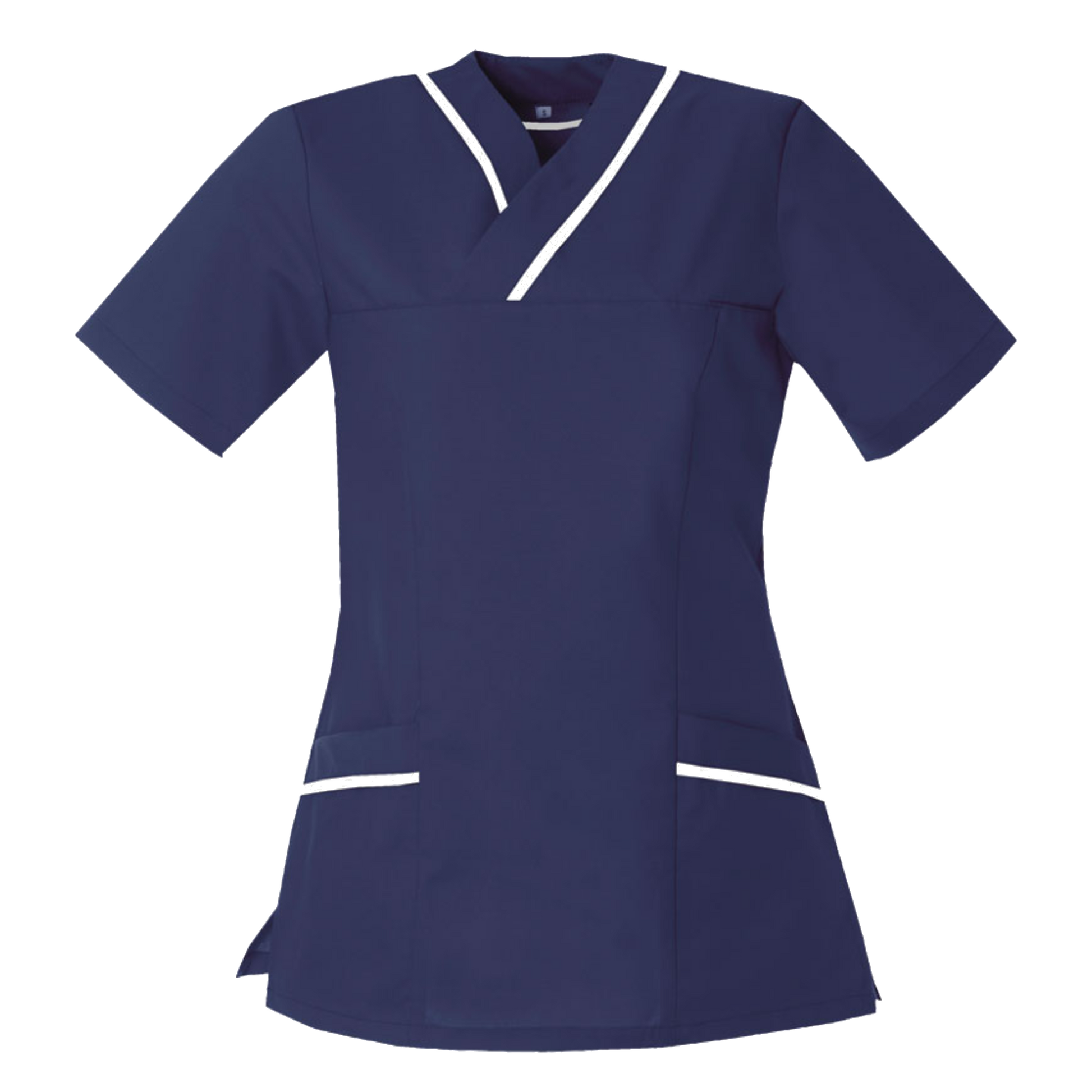 V-halsad bussarong i lätt insvängd modell med kort ärm och passpoal. Sprund i sidan och ryggveck för ökad rörelsevidd. Påsydd bröstficka och två utanpåfickor varav en med extra telefonficka och den andra med nyckelhälla.