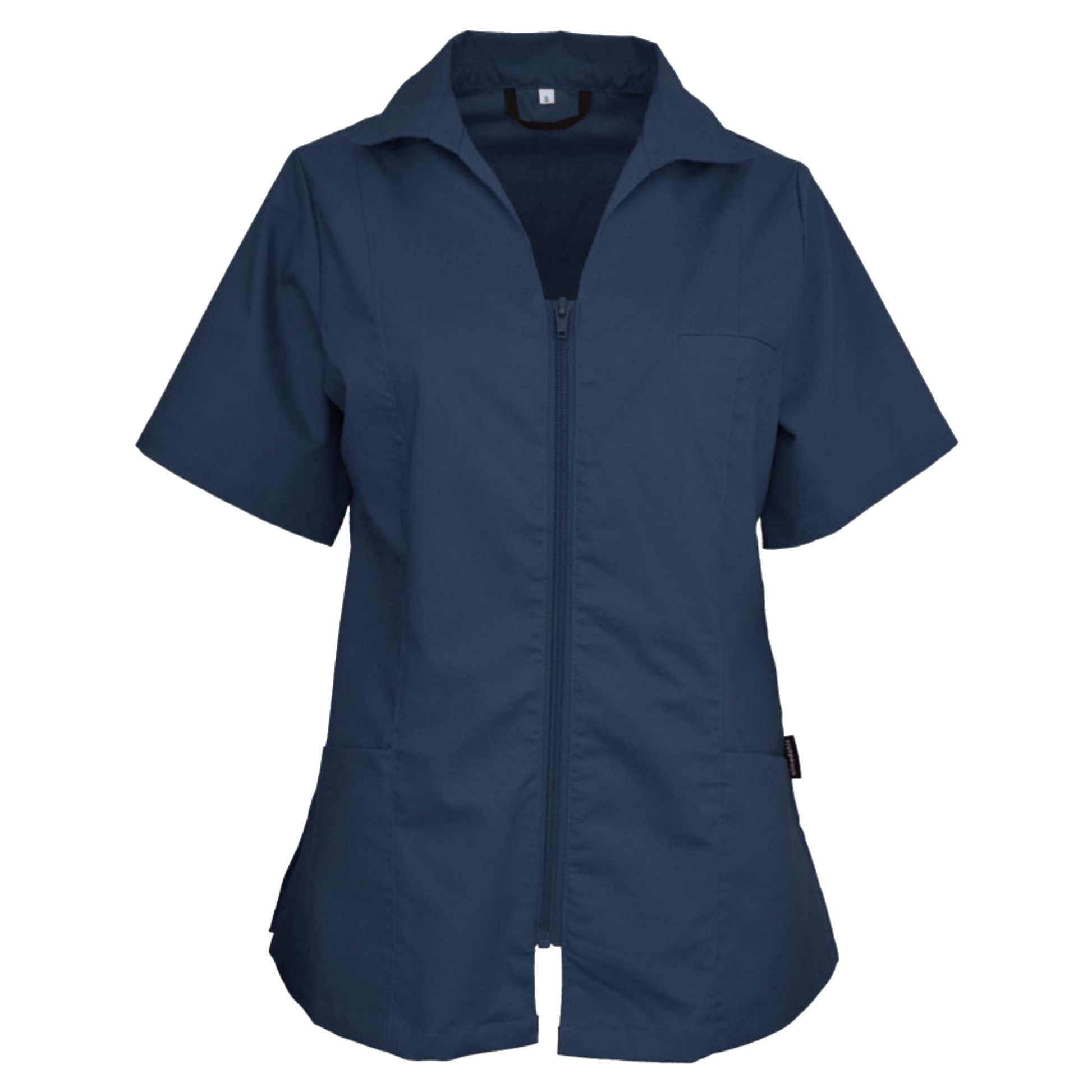 Vårdjacka med kort ärm och knäppning fram med dragkedja. Lätt figursydd modell. Sprund i sidan. En bröstficka och två sidfickor.