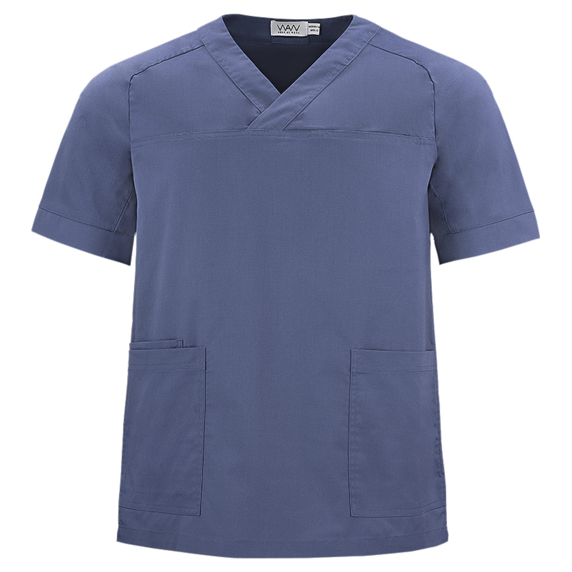 WAW Bussarong med V-hals, speciellt utvecklat för vården. Tillverkad i ett slitstarkt, färgbeständigt material. Bussarongen har raglansöm över axeln, sprund nedtill på båda sidor samt stretchtyg i sidan – allt för en förbättrad rörelsefrihet över rygg och ärm.